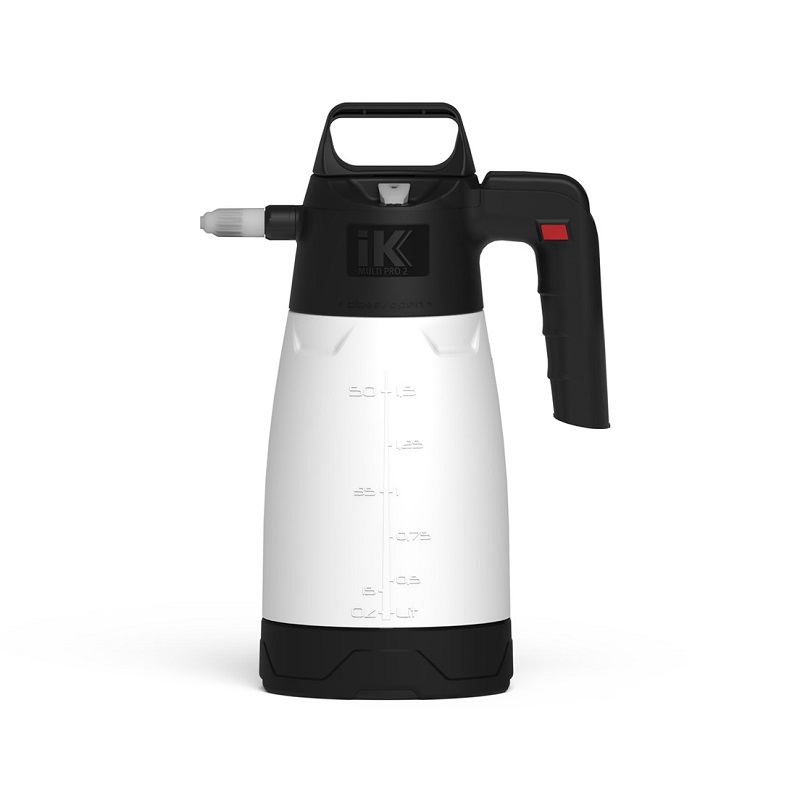 IK MULTI Pro 2 Professional Sprayer je ruční profesionální tlakový postřikovač s obsahem nádrže 1.500 ml a zvýšenou chemickou odolností vůči kyselinám a agresivním produktům. Má ergonomický design (široké plnicí hrdlo, základnu pro větší stabilitu), bezpečnostní ventil (odtlakovatelný, nastavený na 2,5 baru), aretaci spouště a průsvitnou nádrž se stupnicí objemu, která umožňuje kontrolovat hladinu kapaliny uvnitř. Barevné rozlišovače na držadlo pak umožňují snadnou identifikaci jeho obsahu.